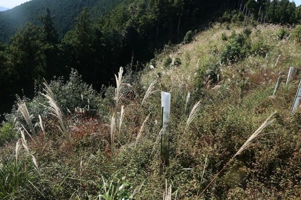 天空三分植樹地のツリーシェルターの苗木は大部分が活着しており、ツリーシェルターを外した苗木も3m前後に育っておりました。